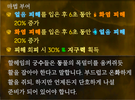 - 냉기 피해를 입힌 후 6초 동안 화염 피해가 20% 증가